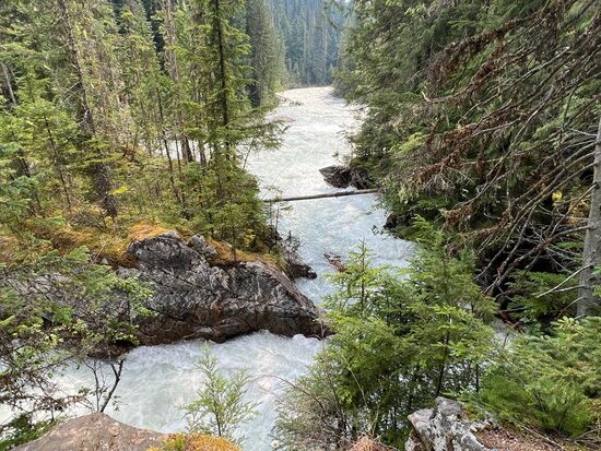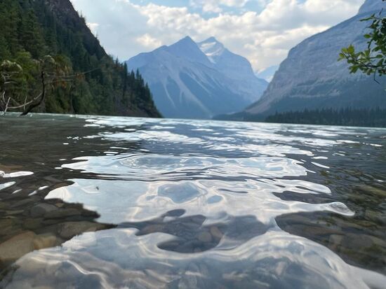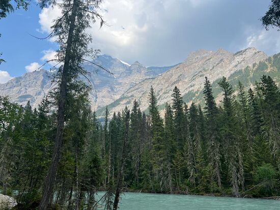Heute Morgen reisten wir aus Clearwater ab und fuhren nach Valemount zu unserem Campingplatz, dem Yellowhead Campground. Nachdem wir dort eingecheckt hatten, machten wir uns direkt auf den Weg zum Mount Robson. Dieser liegt ca. eine 1/2 Stunde entfernt, im Mount Robson Provincial Park und ist der höchste Berg der kanadischen Rocky Mountains. Nach einer kurzen Orientierung im dortigen Besucherzentrum gingen wir den „Berg Lake Trail“ zum Kinney Lake. Die Strecke dorthin führte an einem Fluss entlang durch ein Waldgebiet. Hin und zurück waren es insgesamt ca. 10 km. Der See hatte eine tolle Farbe und war umringt von Bergen, u.a. dem Mount Robson. Da es im Besucherzentrum extra einen Hinweis gab, auf sämtlichen umliegenden Wanderwegen Bärenspray mit sich zu führen, hatten wir unsere Ausrüstung auch heute wieder mit dabei. Bären haben wir aber immer noch nicht gesehen.