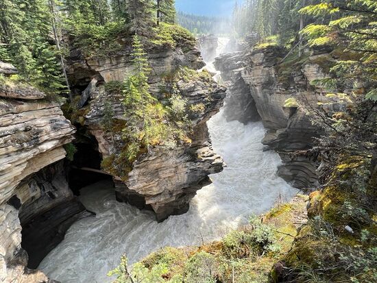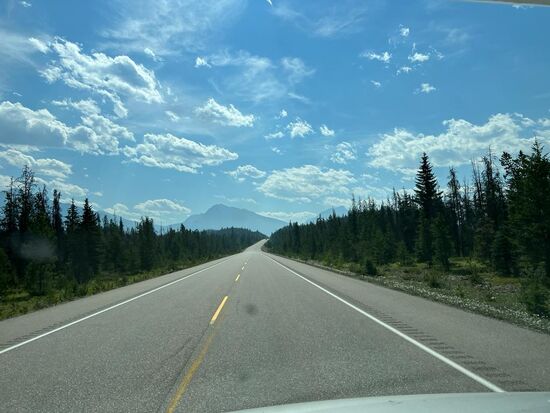 An unserem vorletzten Tag mit Wohnmobil fuhren wir von Jasper aus los in Richtung Banff über den Icefields Parkway. Dabei durchquert man den Jasper-Nationalpark und den Banff-Nationalpark. Der Icefields Parkway ist eine ca. 250 km lange Strecke nahezu ohne jegliche Versorgungsmöglichkeiten und ohne Handyempfang. Das heißt, unser Benzintank war voll, unser Frischwassertank war ebenfalls voll und die Abwassertanks leer. Die Strecke führt dauerhaft durch Waldgebiete, immer entlang eines großen Flusses, der unterwegs mehrmals den Namen ändert und links und rechts sind die Berge mit den verschiedensten Gletschern, daher der Name dieser Straße.