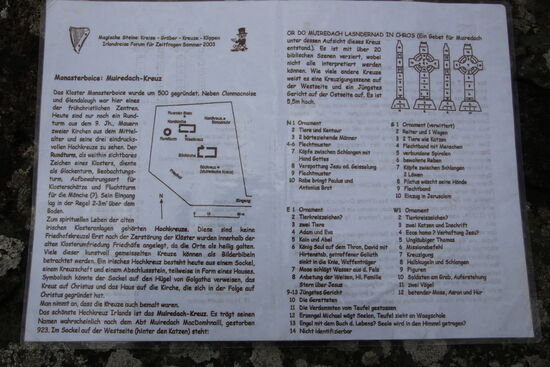 Bis zum Monasterboice sind es etwa 55 Kilometer. Am Eingang werde ich von zwei Damen empfangen, die mir ein laminiertes Informationsblatt auf Deutsch aushändigen und sich eine Weile mir mit unterhalten. Viele Besucher müssen sie hier nicht betreuen. Die, die hier sind, sind überwiegend Angehörige von Menschen, die hier liegen. Nachdem es sich aber um einen sehr kleinen Friedhof handelt, sind das auch nur wenige. So bin ich recht schnell durch und wieder auf dem Weg.
