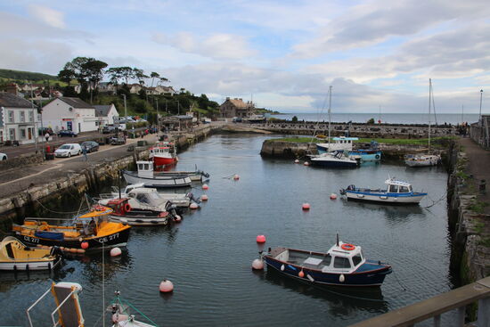 Heute also einer meiner persönlichen Highlights der Reise, der Giant Causeway. Ich habe mir zu Hause schon überlegt, diesen Ausflug nicht mit dem Roller, sondern als Busausflug zu machen. Die Tour habe ich auch zu Hause schon gebucht. Das Wetter scheint nach den letzten eher verregneten Tagen auch mitzumachen. Wir fahren geradeaus nach Norden an die Küste und dann die schöne Straße an der Küste entlang. Eine. ersten Stopp legen wir in einem kleinen Ort mit einem schönen Hafen an. Er ist als Toiletten. Und Verpflegungsstopp gedacht, weil wir keinen Lunchstopp einlegen werden und auch am Giant Causeway kein Mittagessen eingeplant ist. Der kleine Laden, hinter dem wir Parken übrigens wieder ein Spar, ist genau darauf eingerichtet und bietet jede Menge Essen zum Mitnehmen an. Der Bus ist mittelgroß und bis auf ein oder zwei Plätze ausgebucht. Ich habe Glück, dass ich wieder den mittleren Platz auf der Rückbank bekommen. Das ist ja immer mein Stammplatz, weil es auch hier wieder der einzige Sitz im ganzen Bus ist, bei dem ich genug Platz für meine Beine habe. Beim Einsteigen bin ich nicht so glücklich darüber, dass es so voll ist. Dann wurde der Ausflug aber recht nett. Rund 80 Prozent der Teilnehmer sind Studenten aus Augsburg, die hier einen Uniausflug machen. Außerdem ist noch ein Australier dabei, der gerade seinen Bruder in London besucht und mit dem ich meistens unterwegs bin und noch eine Singapureanerin, die für einen Kongress ich Belfast ist. Die restlichen zwei Pärchen habe ich nicht weiter kennen gelernt.