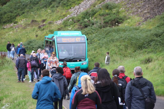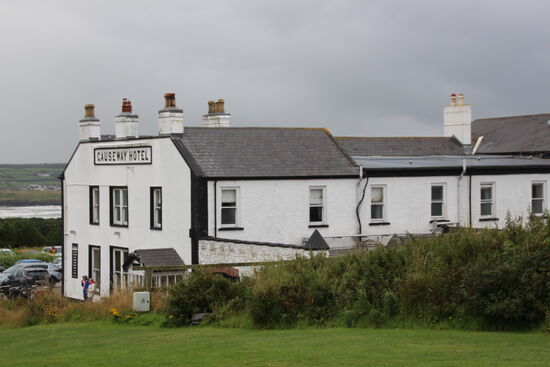 Wir haben hier etwa 90 Minuten die auch gut ausreichen. Ich frage einen der Busfahrer und der meint, sie pendeln immer zwischen dem Parkplatz oben und hier und eine Fahrt kostet ein Pfund oder 1,20 € und man kann bar oder mit Kreditkarte zahlen. Na super, dann gönne ich mir doch die Busfahrt. Oben angekommen laufe ich einmal um das Causeway Hotel herum, das hier einsam auf der Klippe steht und recht schick aber nicht mehr ganz neu aussieht. Neugierig gehe ich rein und frage an der Rezeption, was denn ein Zimmer etwa kostet. Im Moment zu um die 200 Pfund. Naja, das dachte ich mir schon. Inzwischen ist auch der Neuseeländer oben angekommen und wir stellen fest, dass wir noch genug Zeit für einen Drink in dem einen kleinen Pub haben, den es hier gibt. Ich nehme einen Cappuccino, der überraschend gut ist.