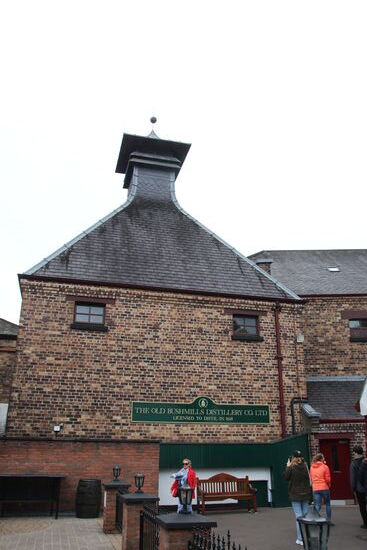 Dann kommt auch schon unser Bus und es geht weiter nach Bushmills wo die wohl bekannteste Whiskeybrennerei Irlands steht. Für eine Besichtigung haben wir leider nicht genug Zeit. Ein paar gönnen sich aber das Whiskey Tasting. Da bietet Bushmills drei verschiedene an, bei denen man jeweils drei verschiedene Whiskey zum Probieren bekommen. Die günstigste Variante kostet 10 Pfund und beinhaltet nur einen 12-jährigen. Das finde ich in Anbetracht der Tatsache, dass wir hier in der Brauerei sind ganz schön teuer. Der Neuseeländer ist sogar davon ausgegangen, dass wir eine Probe umsonst bekommen. Die nächste bessere Kategorie hätte 25 Pfund gekostet. Für die dritte Kategorie wollten sie allen Ernstes 170 Pfund. Ich habe mich dafür entschieden, einen „Hot ‚Toddy“ zu probieren, einen heißen Whiskey mit verschiedenen Gewürzen und Honig. Der hat 4 Pfund gekostet und ganz interessant geschmeckt.
