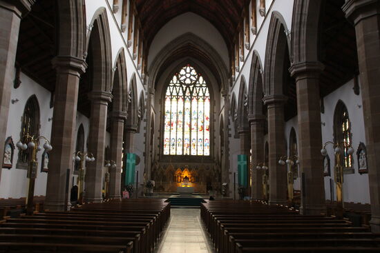 Die Stadtführung zur Geschichte der Stadt beginnt erst um 12:00. Da ich nach dem Frühstück, das ich heute etwas reduziert habe, dafür sind dann um so mehr Rühreier auf dem Teller gelegen, noch Zeit hatte, bin ich erst zur St. Eugene’s Kathedrale. Dort musste ich kurz warten, weil ich beinahe in eine Beerdigung geplatzt wäre, aber ich hatte insofern Glück, als die Beerdigung bereits fast zu Ende war.