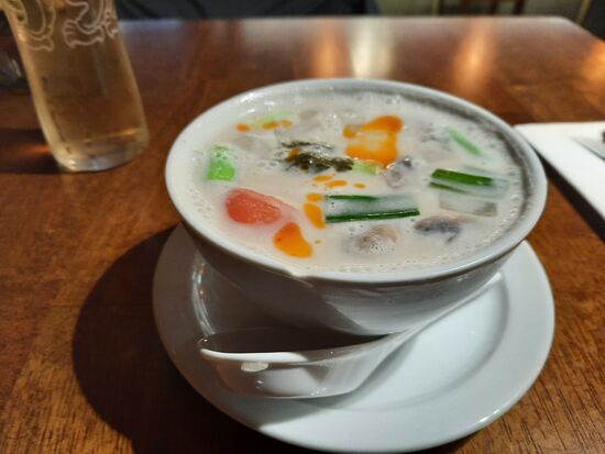 Das Abendessen im Siam Thai war leider enttäuschend. Das Lokal ist ganz nett und auch die Bedienungen sind sehr freundlich, allerdings keine Thailänderinnen. Ich habe erst eine Tom Ka Gai gewählt, die ganz gut war, danach die Empfehlung des Chefkochs, Ente in Tamarindenmarinade mit Ananas. Nachdem ich kein fettes Fleisch mag, bin ich bei Ente immer etwas skeptisch. Leider war es auch hier recht fett und das Fleisch dabei trotzdem ziemlich trocken. Außerdem war es extrem salzig, was möglicherweise durch die Tamarindenmarinade kommt, wobei ich von der Tamarinde nicht allzu viel geschmeckt habe. Ich habe es leider nicht ganz essen können.