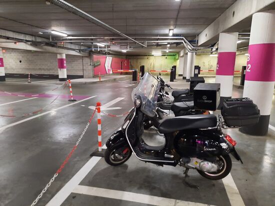 Ich frage, wo ich meinen Roller am besten abstellen kann und der Rezeptionist erklärt mir, dass ich im Parkhaus der Mall mit meinem Roller kostenlos parken kann. Er gibt mir einen Zettel mit der Adresse, die ich im Navi eingeben soll, weil die Straße wohl in zwei Adressbezirke aufgeteilt ist. Dank der bereits erwähnten Baustellen gestaltet sich die Fahr wieder etwas abenteuerlich, aber letztendlich finde ich die Einfahrt.