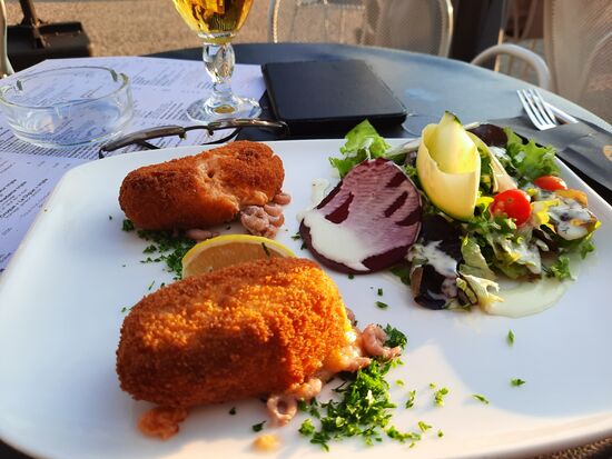 Als es Zeit wird für das Abendessen, bin ich die Fußgängerzone abgelaufen, bis ich auf einen großen Platz mit diversen Bistros gelandet bin. Gier habe ich gemütlich etwas getrunken und einfach nur Shrimp Kroketten mit Salat gegessen. Das hat mir gereicht.