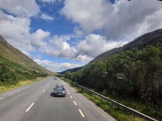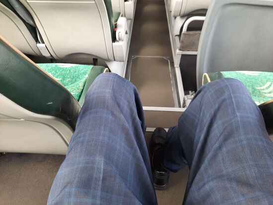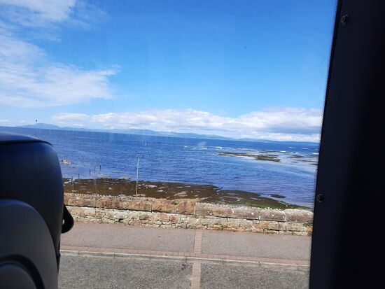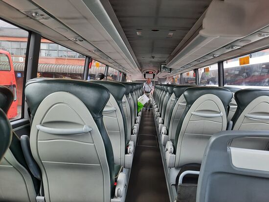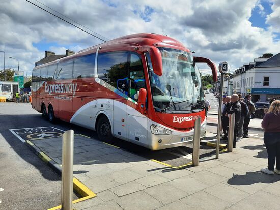Um 11:10 fährt mein Bus nach Galway. Ich habe also Zeit, noch gemütlich zu frühstücken und dann zum Busbahnhof zu laufen. Eine Fahrkarte habe ich mir gestern Abend noch im Internet gekauft. Das hat ganz gut funktioniert. Offiziell dauert die Fahrt gute 5 Stunden und kostet 18 €. Für meinen Koffer zahle ich noch einmal 5 € extra. Wie so oft ist der einzige Platz, auf dem ich halbwegs Platz für meine Beine habe der mittlere Sitz auf der letzten Bank. Der ist wie meistens zum Glück auch noch frei.