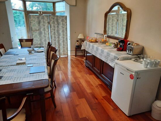 Meine Unterkunft befindet sich in einer Gegend die von Villen mit riesigen ummauerten Grundstücken geprägt ist. Immerhin sehe ich, dass hier ein Bus entlangfährt. Mein Vermieter zeigt mir mein Zimmer und erklärt mir, wo ich in der Nähe zum Abendessen gehen kann. Ich habe aber vor, dazu in die Stadt zu gehen. Als ich ihm erkläre, dass die Lage für mich unglücklich ist, nachdem ich inzwischen mit öffentlichen Verkehrsmitellen unterwegs bin, meint er spontan, dass er mich morgen früh gerne in die Stadt fahren kann, wenn ich das möchte. Klar, das wäre prima. die Villa ist sehr schön und ziemlich pompös. Leider ist das Zimmer dafür etwas spärlich ausgestattet. Fernseher gibt es keinen und auch keine Sitzgelegenheit außer dem Bett. Dann zeigt er mir das Continental Frühstück. Im Wohnzimmer steht ein Kühlschrank mit Päckchen mit Scheibenkäse und gekochten Schinken. Außerdem gibt es eine Kaffeemaschine mit Pads und Toast. Man bedient sich eben selbst wenn man aufgestanden ist. Unter B&B Deluxe verstehe ich eigentlich etwas Anderes, vor allem bei den Preisen.