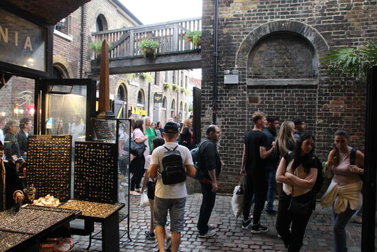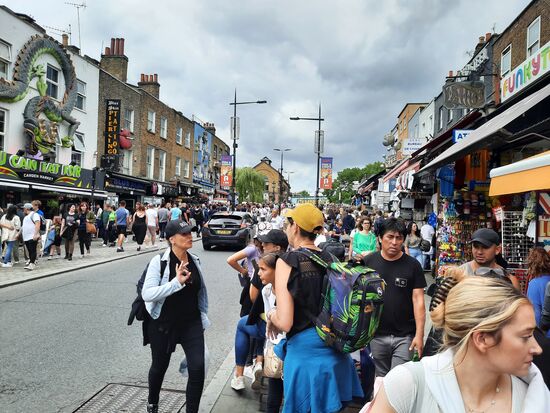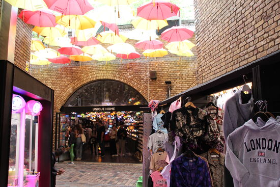 Was dann? Mir fällt ein, dass mir vor vier Jahren der Camden Market so gutgefallen hat. Da könnte ich doch wieder vorbeischauen. Gesagt, getan, in die Metro und von der Themse nach Camden gefahren. Am Ausgang schwant mir schon übles, als sich die Leute an der Rolltreppe stauen. Draußen auf der Straße dann unübersehbare Menschenmengen. Das ist ja noch schlimmer als vorgestern in Chinatown. Ich gönne mir am. Rand des, Marktes an dem kleinen Kanal einen leckeren Mocktail bevor ich mich in das Gewühl stürze. Mir ist in den letzten Tagen schon aufgefallen, dass in London Cocktails oder Mocktail in der Relation zum Bier regelrecht günstig sind.