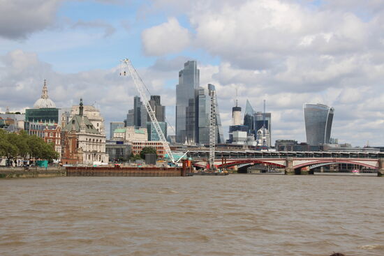 Dann habe ich noch einmal einen neue. Versuch gestartet, zum Sky Garten hochzukommen. Meine Hoffnung steigt, als ich auf das Gebäude zu laufe und keinerlei Warteschlange zu sehen ist. Nur um dann enttäuscht zu werden. Nicht in. Es kommt niemand ohne Online Ticket hoch. Sie sind komplett ausgebucht. Ja, Manchmal lassen sie am Morgen Leute ohne Ticket hoch, Heute aber nicht. Ich schlendere in der Gegend herum, laufe über die London Bridge und denke mir, ich könnt doch heute einmal gemütlich etwas in einer der netten Kneipen direkt an der Themse trinken. Da finde ich aber nur eine, die hat keinerlei Regenschutz, und es wird schon wieder immer dunkler am Himmel. Leichtes Nieseln setzt auch schon ein.