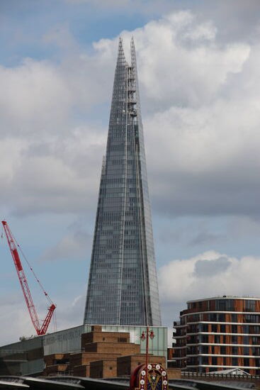 Es gibt übrigens noch eine weitere Aussichtsterasse in London oder besser gesagt zwei. Eine ist in der St. Pauls Kathedrale und man muss über 500 Treppenstufen hochsteigen. Die fällt also aus. Die zweite geht auf dieses spitze Gebäude hoch und kostet 32 Pfund. Dir wäre ich schon bereit zu zahlen, nur ist die Terrassen gerade wegen Bauarbeiten geschlossen. Also dann, laufe ich in leichtem Regen zum ersten Mal über die Millennium Bridge und nehme von dort die Metro zum Hotel.