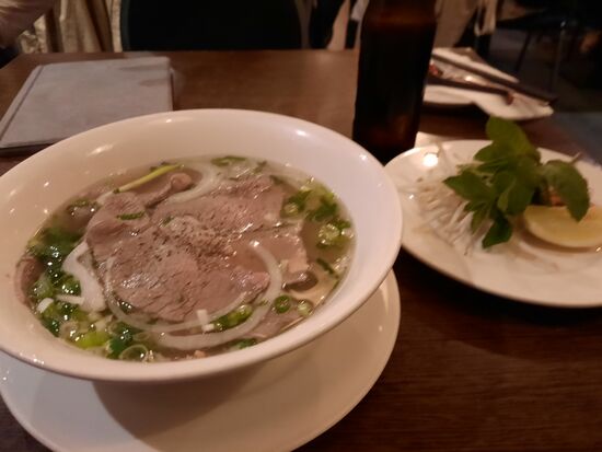 Am Pier Westminster steige ich aus und nehme die Metro zum Hotel zurück. Heute, am Sonntag sind auch in London viele Restaurants geschlossen. Darunter auch das Fish Central, in das ich heute gehen wollte. Auch alle Restaurants mit Sushi Bändern sind heute zu. Es gibt nicht viele, aber immerhin – in Stuttgart gibt es ja gar keines mehr. Also möchte ich ein Lokal ausprobieren, das gar nicht weit weg vom Hotel liegt und sich auf Dim Sum spezialisiert hat und außer dem im Internet sehr gut bewertet wird. Notfalls, wenn es nichts sein sollte, gibt es ein paar Meter weiter noch einen Vietnamesen. Das Dim Sum Lokal scheint recht klein zu sein. Dafür ist die Schlange davor umso länger. Ich fürchte, das wird nichts. Also weiter zum Vietnamesen. Da stehen ebenfalls Leute davor, aber nicht so vielen. Ich stelle mich also an und werde auch kurz darauf vorgerufen, weil ein einzelner Platz frei ist, an den ich gesetzt werde. Liebe oder gibt es meine „Wunschsuppe“ mit Fisch und Tamarindenpaste nicht. Also nehme ich die klassische Pho Bo mit Rindfleisch. Die ist in Ordnung, aber nichts Besonderes.