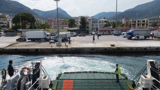 Nach dem Frühstück geht es zügig zur Fähre (je 11 €) und damit dann auf das Festland. Nach 1 1/2 Stunden erreichen wir Igoumenitsa, wo wir das Auto übernehmen.
