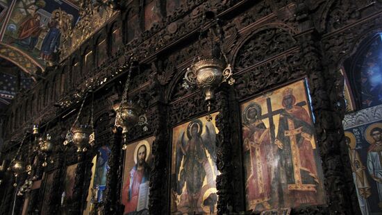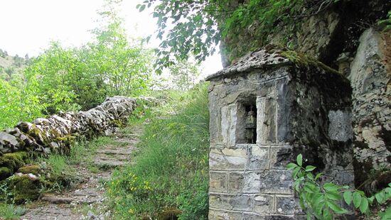 Malerisch ziehen sich Papigo und Micro Papigo den Hang entlang (1.700m). Typische Steinhäuser mit Schieferdächern, alte gepflasterte Wege und Gassen und eine kleine Kirche ziehen uns in ihren Bann. In der Kirche ist ein Restaurator seit 12 Jahren damit beschäftigt, die Fresken wieder herzustellen. Nicht nur hier, viele Dörfer im Zagori-Gebirge sind nicht durchfahrbar. Die Gassen sind steil und gepflastert, Autoverkehr ist da nicht möglich, es geht ständig auf und ab – also vor den Dörfern parken.