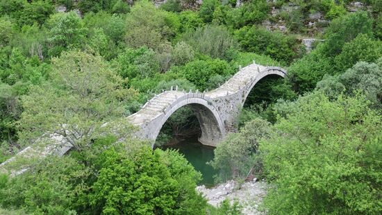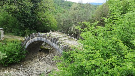 Auf dem Rückweg nach Dilofo besuchen wir noch einige alte Steinbrücken, wie die Captains Bridge und die Plakida Bride, die malerisch das (trockene) Bachbett überqueren.