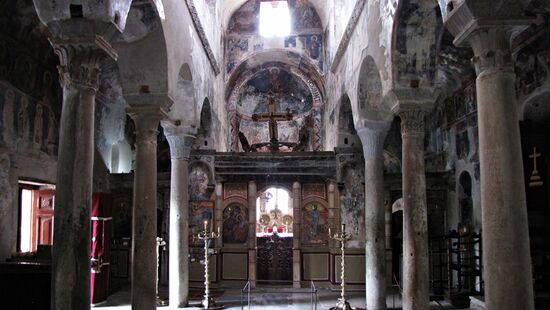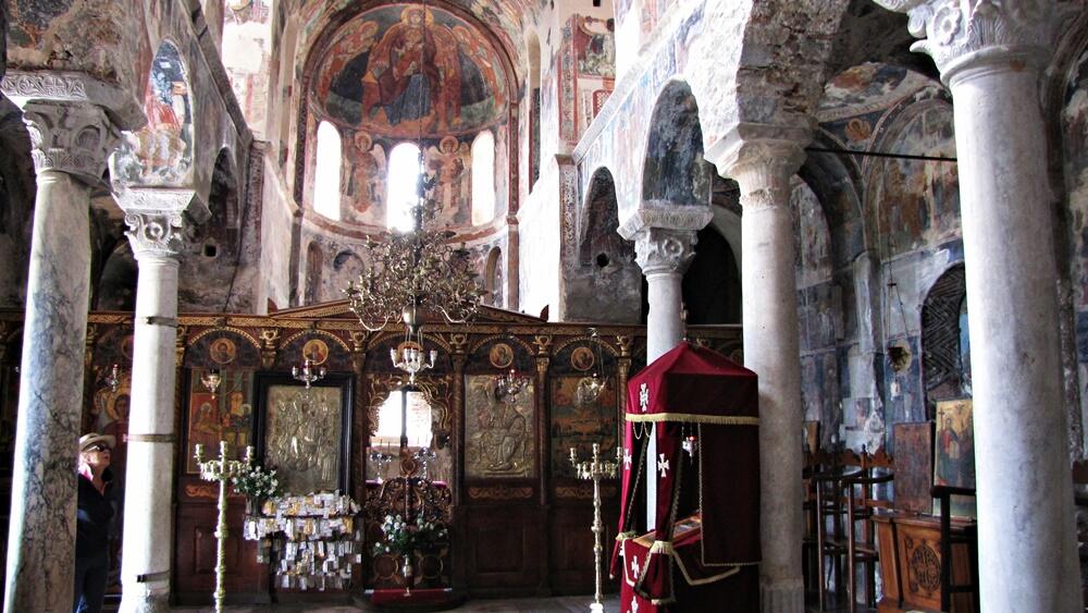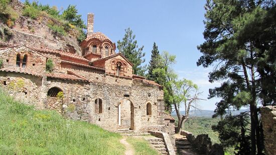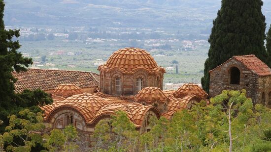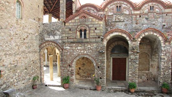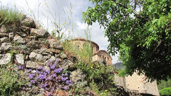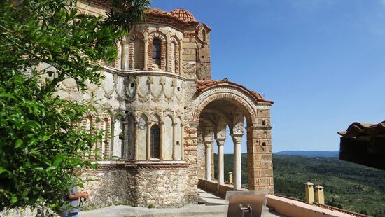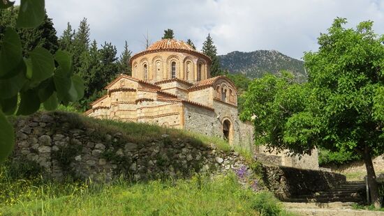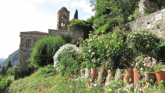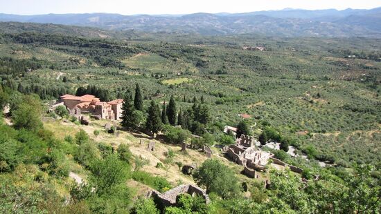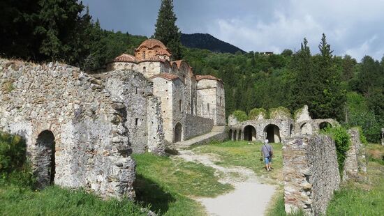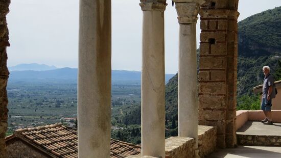 Das 6 km entfernte Mystras (Weltkulturerbe), eine alte byzantinische Ruinenstadt, steht auf dem Programm. Eintritt für Rentner 6,- €, sonst 12,- €.
