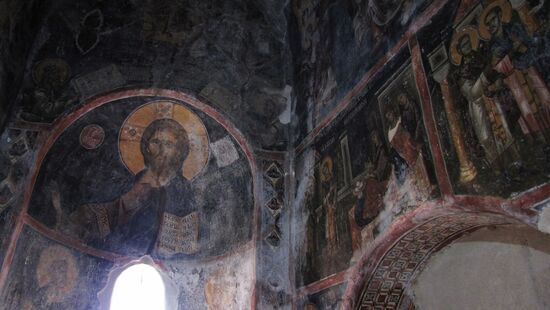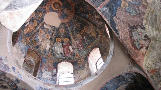 Die wechselhafte Geschichte dieser Bergfestung beginnt mit dem 4. Kreuzzug Anfang des 13. Jahrhunderts. Die Ruinen ziehen sich malerisch den Hang hinauf, gekrönt von den Resten der Festung. Die in ihrer Architektur unverwechselbaren Kirchen stammen aus dem 14. und 15. Jahrhundert und verfügen tw. noch über farbenprächtige Fresken. Uns bieten sich bei der Wanderung den Hang hinauf immer neue Aussichten und Ansichten. Die Zeit (etwa 4 Stunden) vergeht wie im Flug. Nach einer Mittagspause, (wir genießen im heutigen Ort Mystras unseren Snack aus Tomaten, Feta und reichlich Olivenöl über getrocknetem Brot) fahren wir das Gelände noch von der Festungsseite auf 3/4 der Höhe an und genießen nach gut 30minütigem Aufstieg von dort den Blick über das Gelände und die Landschaft.