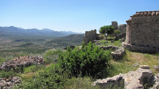 Etwa 40 km hinter Sparti liegt das Dorf Geraki ganz in der Nähe der Ruinenreste des alten Geraki. Zu byzantinischer Zeit (12. – 14. Jh.) erreichte der Ort seine Blüte. Noch wird die Anlage nicht wirklich touristisch vermarktet. Wir standen zunächst vor verschlossenem Tor. Hatten dann aber das Glück, daß geöffnet wurde, da man eine Gruppe mit Führung erwartete.
