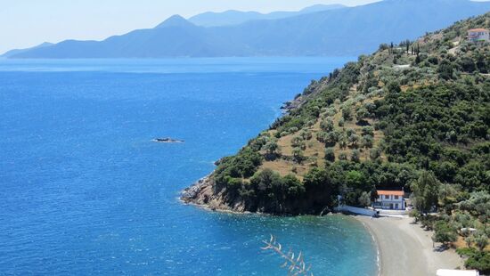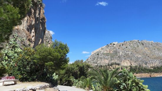 Die Küstenstraße Richtung Argos führt entlang der Felsen, die hier teils steil und schroff ins Meer abfallen.