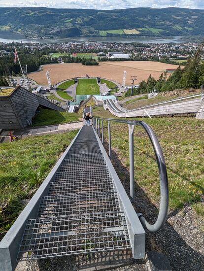 Nach einer guten Nacht auf einen etwas matschigen Waldparkplatz fahren wir nach Lillehammer. Unser Ziel ist der Olympiapark und die Sprungschanze mit seinen 936 Stufen. Wer oben angekommen ist kann wirklich Stolz auf sich sein - ich war es wenigstens auch wenn viele, vor allen junge Leute und selbst Georg