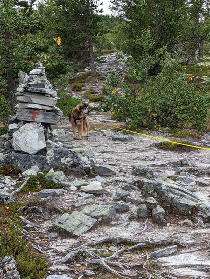 Aber auch hier war nach heftigen Regenfällen, Land unter. Ganze Straßenzüge waren gesperrt, so das wir uns gleich für Plan B entschieden und gen Süden Richtung Vennessla zur Tommerenna fuhren. Die Tommerenna ist eine alte Flößerrinne. Der Startpunk ist am Kraftwerk Steinsfossen und ca. 4 Kilometer lang. Wir waren erst am Nachmittag dort angekommen und es war einigermaßen viel los, so das wir beschlossen am nächsten Tag früh wieder zu kommen. Die Tommerenna ist schmal und es wird ohne Hund schon eng wenn es voll ist. Am nächsten Morgen waren wir so gut wie alleine und konnten es richtig genießen. Am Ende steht man vor einer Staumauer und wer keine Lust hat die Rinne auch noch zurück zu laufen, kann über eine Waldstraße - auf einem Hinweisschild steht nach Vennessla 10 Kilometer - zu Fuß zurück laufen. Steinsfossen liegt vor Vennessla ich schätze es sind ca. fünf Kilometer Fußmarsch. Unterwegs gibt es noch wieder eine Möglichkeit zur Rinne zurück zu laufen - haben wir aber nicht gemacht - der Rundweg war herrlich und das bei bestem Wetter.