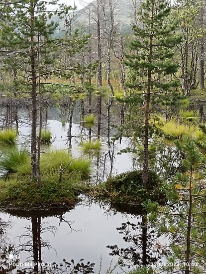 Unser nächster Halt lag an der 27 nahe Atnbrua. Als wir hier vorbei fuhren entschieden wir kurzfristig hier zu bleiben. Ein großer Parkplatz mit Toiletten, ein Platz für Kinder und in der Saison auch ein Kiosk, der hatte aber schon geschlossen. Aber vor allen ein guter Ausgangspunkt für Wanderungen. Die Wanderung ging über eine Hängebrücke weiter durch etwas matschigen Boden der teils mit langen Brettern ausgelegt war. Immer wieder traf man auf Stellen, die man irgendwie umgehen musste aber das machte das Ganze eher noch spannender und man wurde mit einer abwechslungsreichen Landschaft belohnt. Weiter unten hatte man das Gefühl durch eine Schneelandschaft zu laufen, dabei handelte es sich um weiße Moose die den ganzen Waldboden bedeckten wo zwischendrin noch Beeren und Pilze hervorlugten