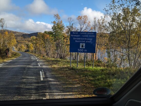 Nach einer guten Nacht machen wir uns nach dem Frühstück auf den Weg nach Kirkenes. Von der Stadt sehen wir nicht viel - wir halten nur einmal am Grenzübergang nach Russland.