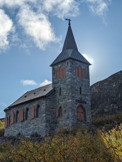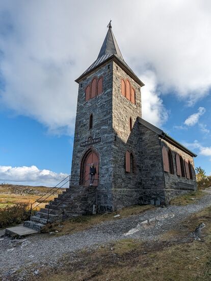 Unser Ziel ist der Ort Grense Jakobselv und die Kirche am Berg, die 1869 geweiht und vier Jahre später, nach einen Besuch des schwedischen Königs Oskar II, nach ihm benannt wurde. Von Kirkenes aus fährt man eine gute Stunde. Die Straße ist so schlecht, das uns die Türklinke von der Toilettentür abgefallen ist - aber es lohnt sich.