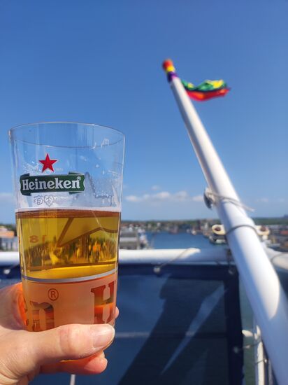 Da ich die letzten Male mit der King gefahren bin, kenne ich mich nicht aus und irre etwas herum, finde irgendwann den Aufgang zur SkyBar und verperle das traditionelle Heineken. Geschafft! Jetzt fängt der Urlaub an. Es kommt mir alles noch etwas unwirklich vor. Ich brauche immer eine Weile, bis ich es glauben kann: Drei Wochen Schottland liegen vor mir!