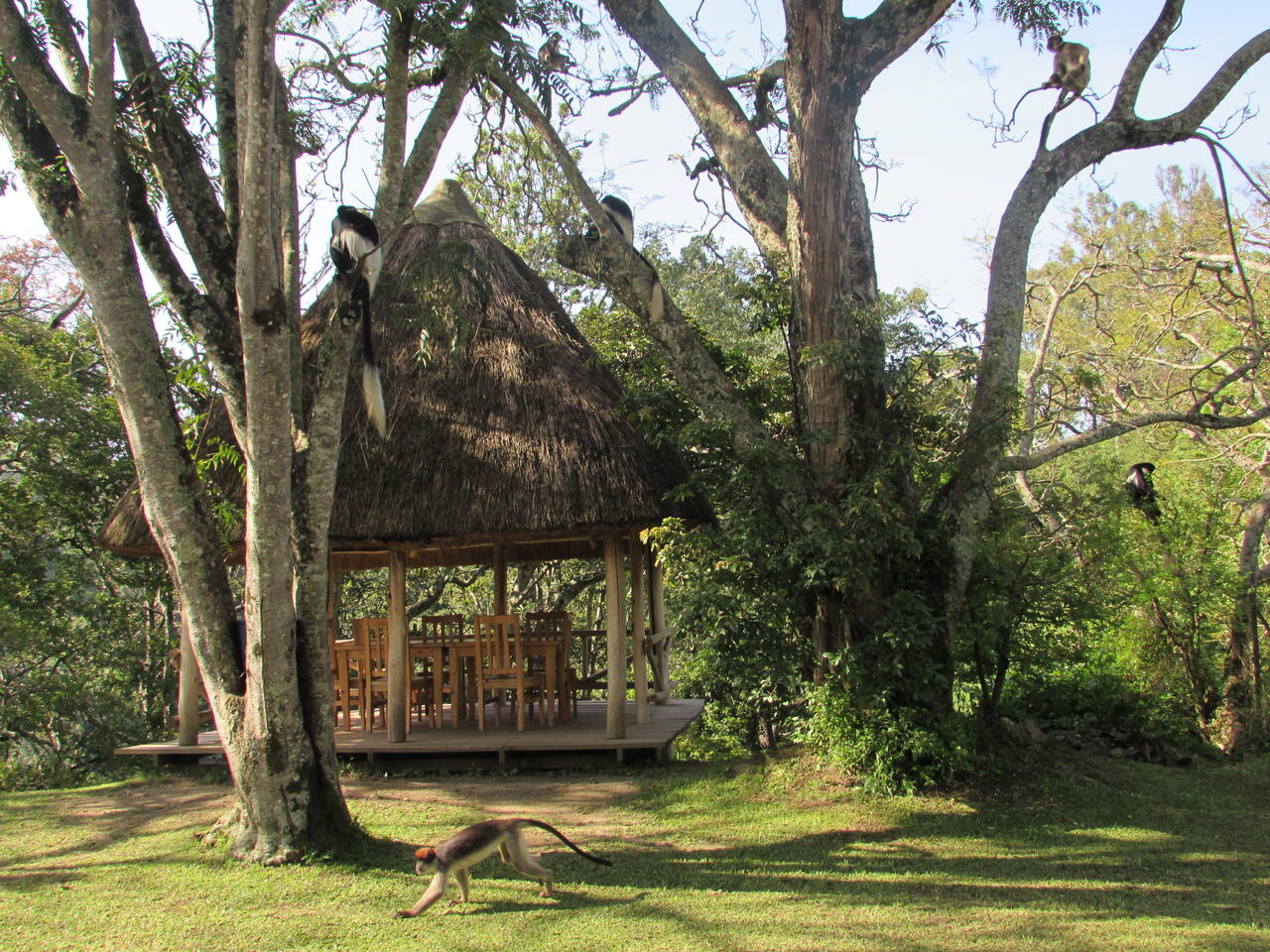 Die Meerkatzen sind dreist. Sie kommen bis in den Essraum und stehlen alles essbare was man nicht verteidigt.