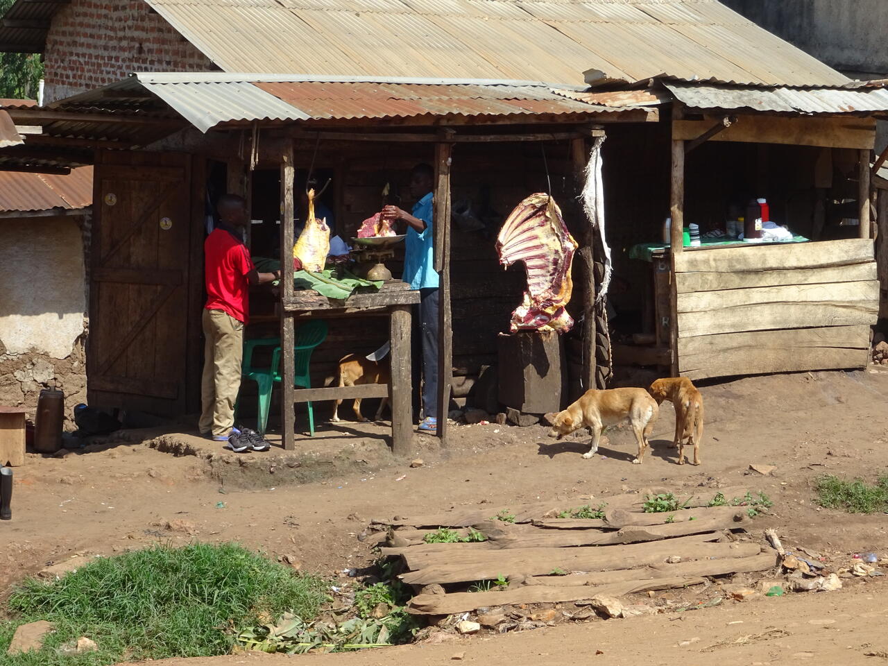 Das Dorf Rwaihamba ist nicht besonders groß. Es besteht aus einfachen Hütten und Häusern. Direkt davor wird ein kleines Geschäft betrieben.