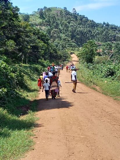 Auf unserem Rückweg kommen uns unzählige Menschen entgegen. Sie haben sich richtig fein gemacht - sie kommen gerade aus der Kirche.