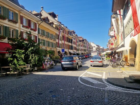 Am nächsten Morgen fahren wir nach Murten am Murtensee. Der stadtnahe Parkplatz ist wegen einer Veranstaltung überfüllt, wir finden aber noch Platz beim Strandbad. Dann bummeln wir durch die historische Altstadt.