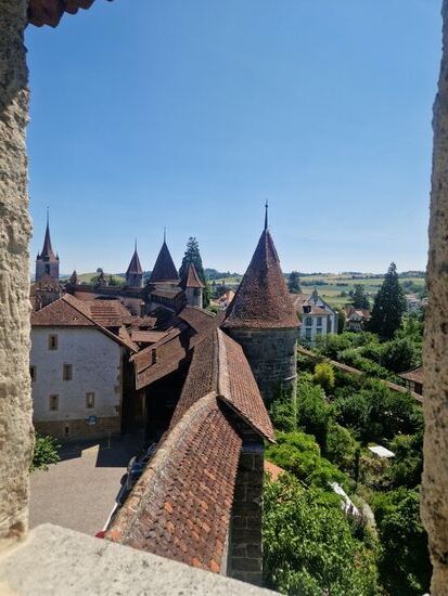 Am nächsten Tag fahren wir in den Mittelalterort Estavayer-le-Lac am Neuenburgersee. Unterweg halten wir in Vallon, wo es am Römermuseum einen kleinen Markt gibt. In Estavayer lassen wir uns gleich ein Stück von dem lokalen Rahmkuchen schmecken, dann bummeln wir ausgiebig durch die Gassen der Altstadt. Picknick machen wir an einem Aussichtspunkt beim Schloss Chenaux.