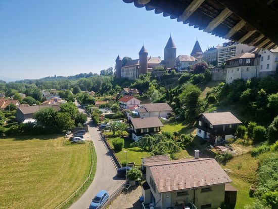 Der Weg führt uns hoch zum Schloss. Auf dem Rückweg gehen wir durch das Einkaufzentrum La Maladiere, wo es Kaffee und Kuchen gibt. Am späten Nachmittag fahren wir an den Strand von Salavaux am Murtensee. Der ist aber eher eine Enttäuschung, was Ambiente und Wasserqualität betrifft.