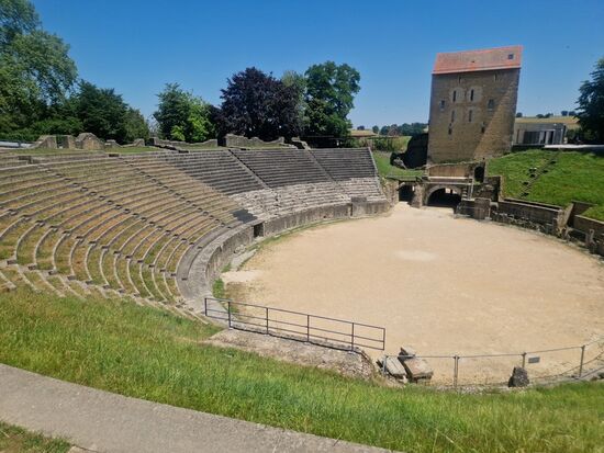 Hinterher fahren wir noch nach Avenches, wo wir die schöne Altstadt und die sehenswerten Reste der römischen Siedlung erkunden. Aventicum war die Hauptstadt der römischen Provinz Helvetia. Auf der Terasse des Ferienhauses gibt es dann Kaffee, Kuchen, Joghurt und Kirschen.