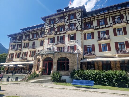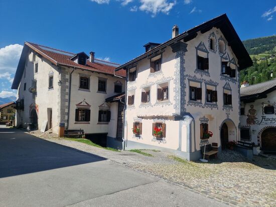 Wir fahren auf einer abenteuerlichen Gebirgsstraße weiter in das "Bahndorf" Bergün. Hier wartet das Bahnmuseum der Albulabahn mit einem sehr einladenden Cafe. Der Ort selbst ist auch unbedingt sehenswert, ebenso das Kurhaus.