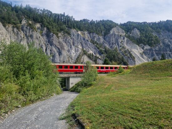 Unsere letzte Station in der Schweiz ist das Dorf Bonaduz bei Chur im Kanton Graubünden. Hier sind wir im rätoromanischen Gebiet, mit der Rhätischen Bahn (RhB) wollen wir hier unterwegs sein.