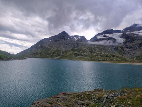 Wir passieren den Bahnhof Ospizio Bernina, die höchstgelegene Bahnstation der Rhätischen Bahn. Hier kann man vom Zugfenster aus Bergseen und Gletscher bewundern.