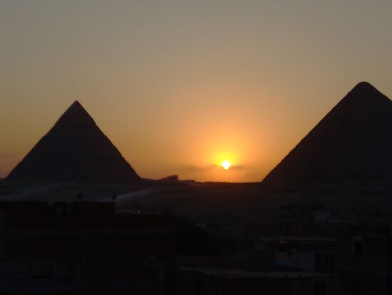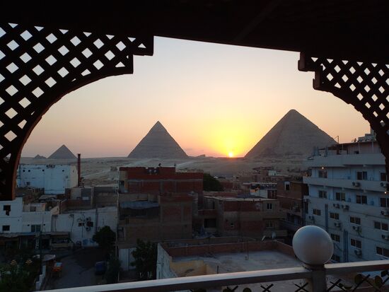 Wir kamen am Flughafen von Cairo an, hatten uns aber entschieden, für unseren ersten Aufenthalt nicht in Cairo Downtown zu wohnen, sondern in Giza in einem Guesthouse mit Blick auf Gizas Pyramiden. Es war ein unglaubliches Erlebnis, als ich in der ersten Nacht nicht schlafen konnte und ich, immer wenn ich die Augen öffnete, die Umrisse der großen Cheops-Pyramide sehen konnte.