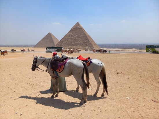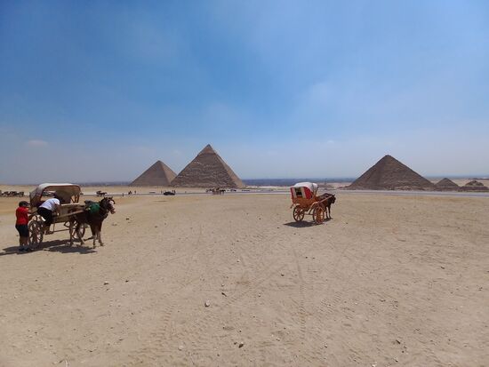 Bei der Hitze im August empfiehlt es sich doch, evtl. eine Kutsche zu den Pyramiden zu nehmen, da man da einen Sonnenschutz hat.