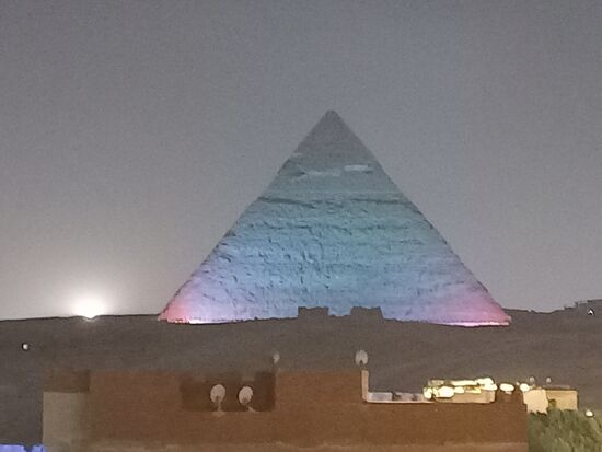 Abends gibt es eine Sound & Light-Show bei den Pyramiden von Giza. Von den umliegenden Dachterassen kann man auch zusehen.