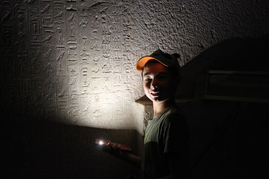 Mein Sohn holte sein Handy raus und schaltete die Taschenlampenfunktion an und führte mich dann durch die Pyrmaide, inklusive den steilen Gang gebückt herabsteigen, durch tiefe Gänge kriechen, aber auch mit der Taschenlampe Hireoglyphen beleuchten und letztendlich in die Grabkammer kommen. Etwas unheimlich war es schon, in den Sarg zu leuchten. Aber vor allem aufregend und begeisternd. Was für ein cooles Abenteuer, nicht nur für meinen 10jährigen Sohn, auch für mich!