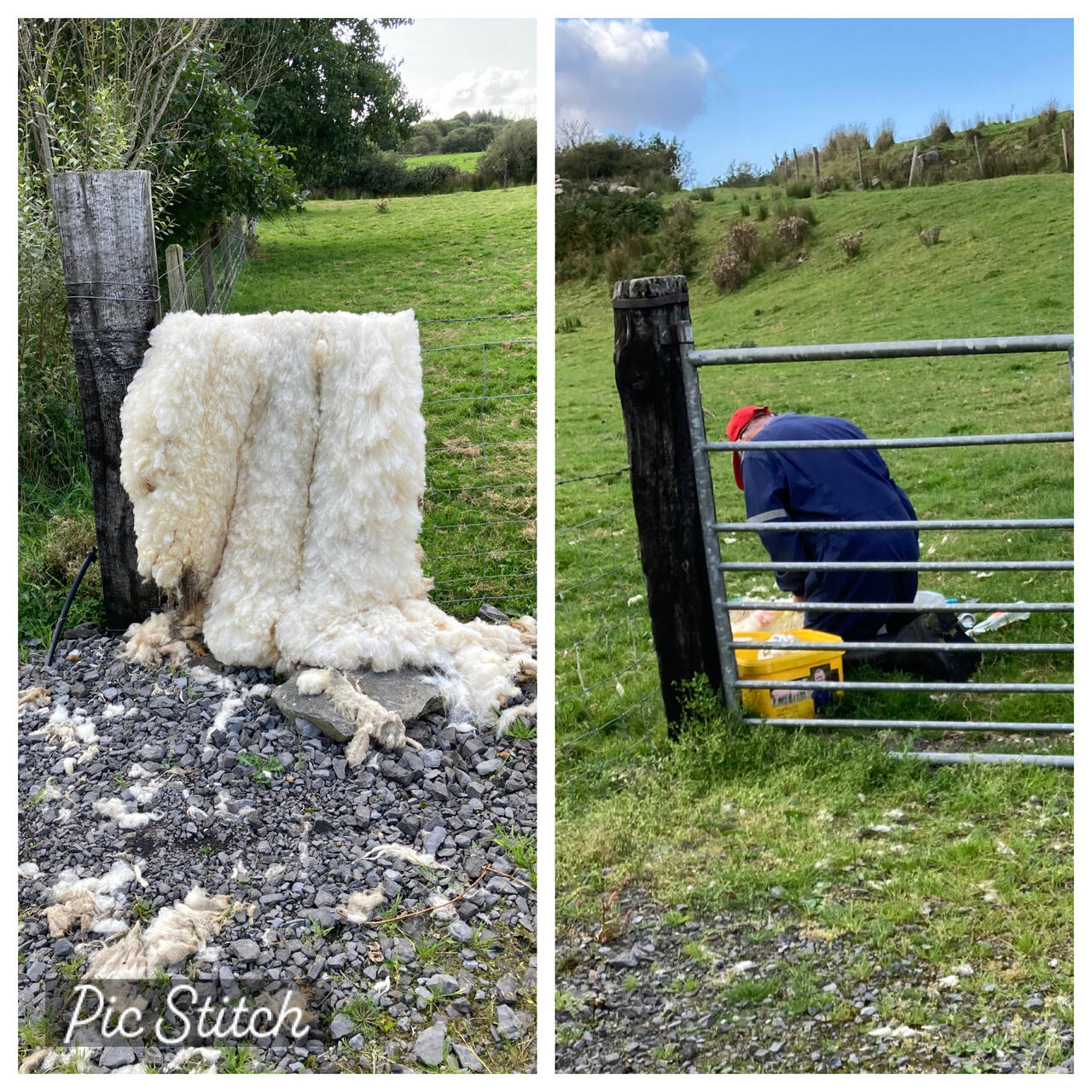 Im beständigen Sichtkontakt bleibt die Silhouette des Croagh Patrick, der höchste Bergkegel in einer Hügelkette. Ansonsten gibt es viel Grünland, zT. von Schafen/Rindern beweidet. Wir sehen einen Schäfer bei der Schur eines Schafes und halten an. Das Schaf ist von Ungeziefer befallen, wird geschoren und mit Medikamenten besprüht. Der Schäfer freut sich scheinbar über Gesellschaft und hört kaum auf zu erzählen: Tochter in Australien, der Greenway als ehem. Bahntrasse, Krankheiten der Schafe….