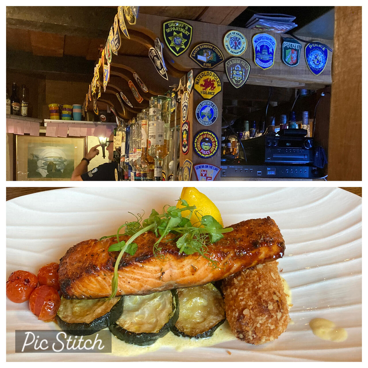 An der Bar: Polizeiabzeichen aus der ganzen Welt, die der Bar von Polizisten zugesandt wurden. (Oben rechts, zweitletztes Abzeichen, eines aus Deutschland)