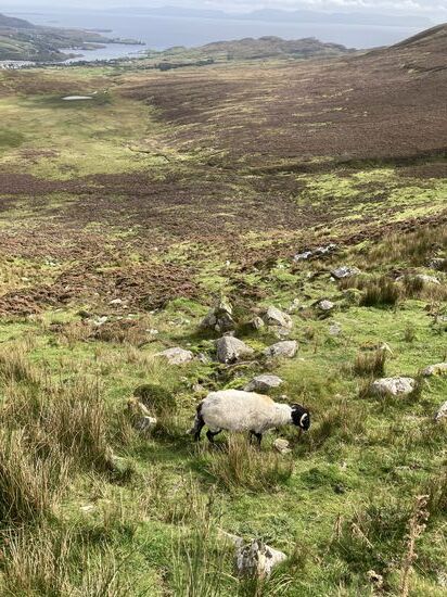 Eine Gruppe von fünf jungen Männern aus dem Guesthouse treffen wir ebenfalls auf dem Weg wieder. Gegenseitig noch ein Foto gemacht dann geht die Wanderung zwischen Heideflächen und Schafen weiter.