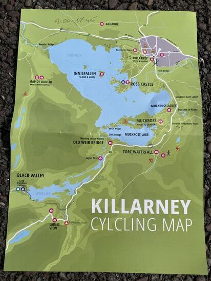 Am Upper Lake, Muckross (Middle) Lake, Muckross House and Garden vorbei entschließen wir uns noch zum Ross Castle zu radeln. Nach einem kurzen Rundgang und Aussichten auf den See und die umliegenden Berge wird es Zeit die Räder zurückzugeben.