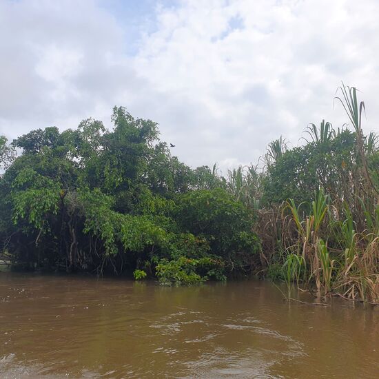 Wir bleiben solange unter einem großen Baum, der Weit über den Fluß hängt, hilft allerdings nur begrenzt, am Ende sind wir alle klitschenass.