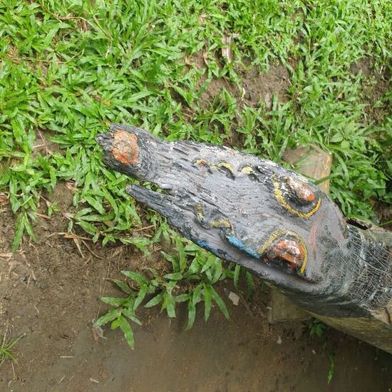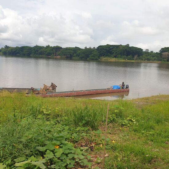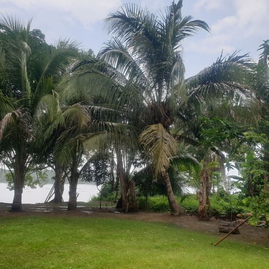 Wir fahren durch einen schmalen Kanal, und kommen in Albert's Dorf an - in Kanganamun, und werden schon von den Kindern erwartet. Natürlich tragen sie wieder alles bis zum Haus.