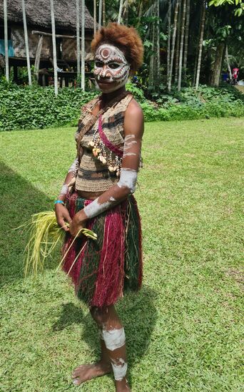 Auch der Kasuartanz wird dann vorgeführt, nachdem die erste Tourigruppe eingetrudelt ist.